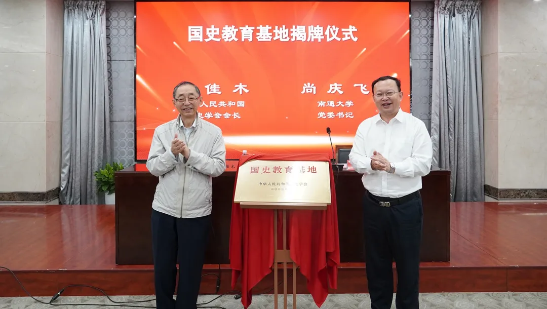 中国社会科学院原副院长、中华人民共和国国史学会会长朱佳木与南通大学党委书记尚庆飞共同为“国史教育基地”揭牌