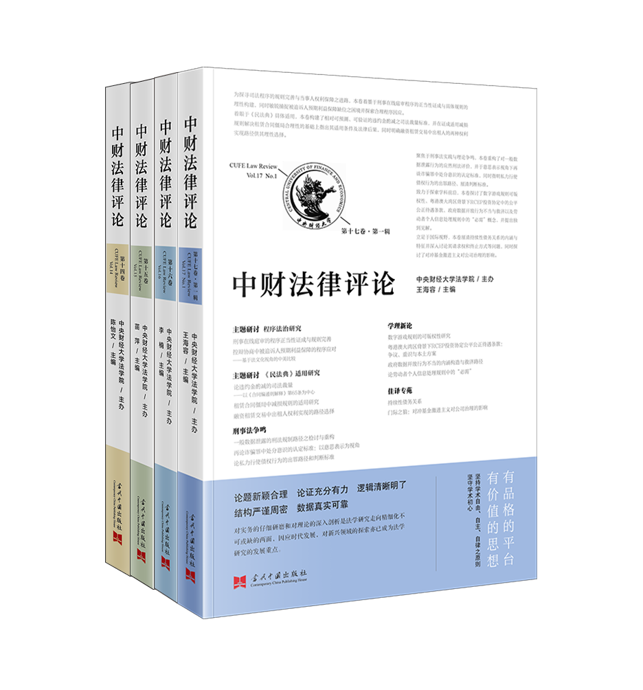 《中财法律评论》是由中央财经大学法学院主办、当代中国出版社公开出版的法学学术连续出版物,由全日制学生自主负责文章的编辑和审校。自2008年创刊以来连续出版,其品质的连续性在国内同类著作中名列前茅。作者群体除国内外主流法学院校的研究生,更有优秀中青年学者、法官等实务工作者。