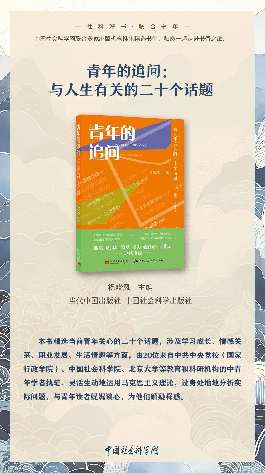 更多>>近日,社科好书·联合书单(2025年第10期)发布,《青年的追问——与人生有关的二十个话题》入选。